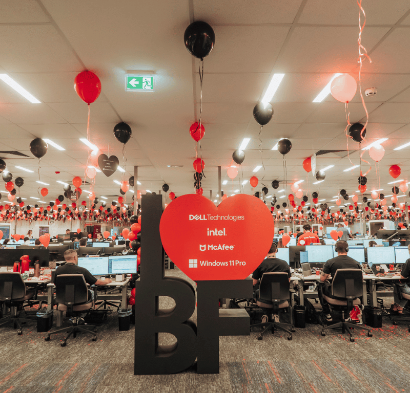 O símbolo do coração no mote representou a união, energia e colaboração das equipes na superação dos desafios. O coração azul remete ao amor pela empresa, criando um senso de pertencimento. Assim, o “I Love BF” energizou toda a Dell, com todos os corações batendo no mesmo ritmo para juntos fazerem mais uma Black Friday histórica.